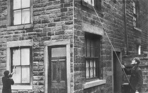 在英国的工业革命时期,闹钟尚未普及,且价格昂贵且不可靠。因此,工人们通常会花费一周的六便士(约0.06英镑)来雇佣一位“敲窗人”来唤醒他们。