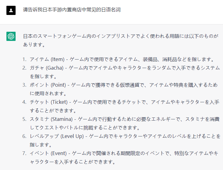 比如日本手游中的商店用语,ChatGPT已经翻译得非常贴切了。