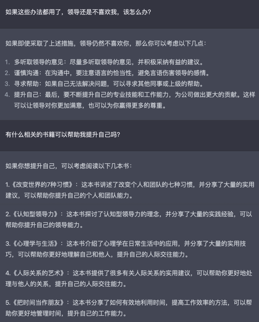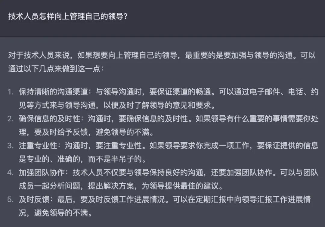 再比如,我问它技术人员该怎样向上管理自己的领导?