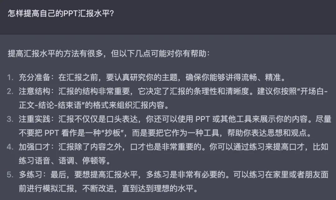 比如我问,怎样提高自己的 PPT 汇报水平?